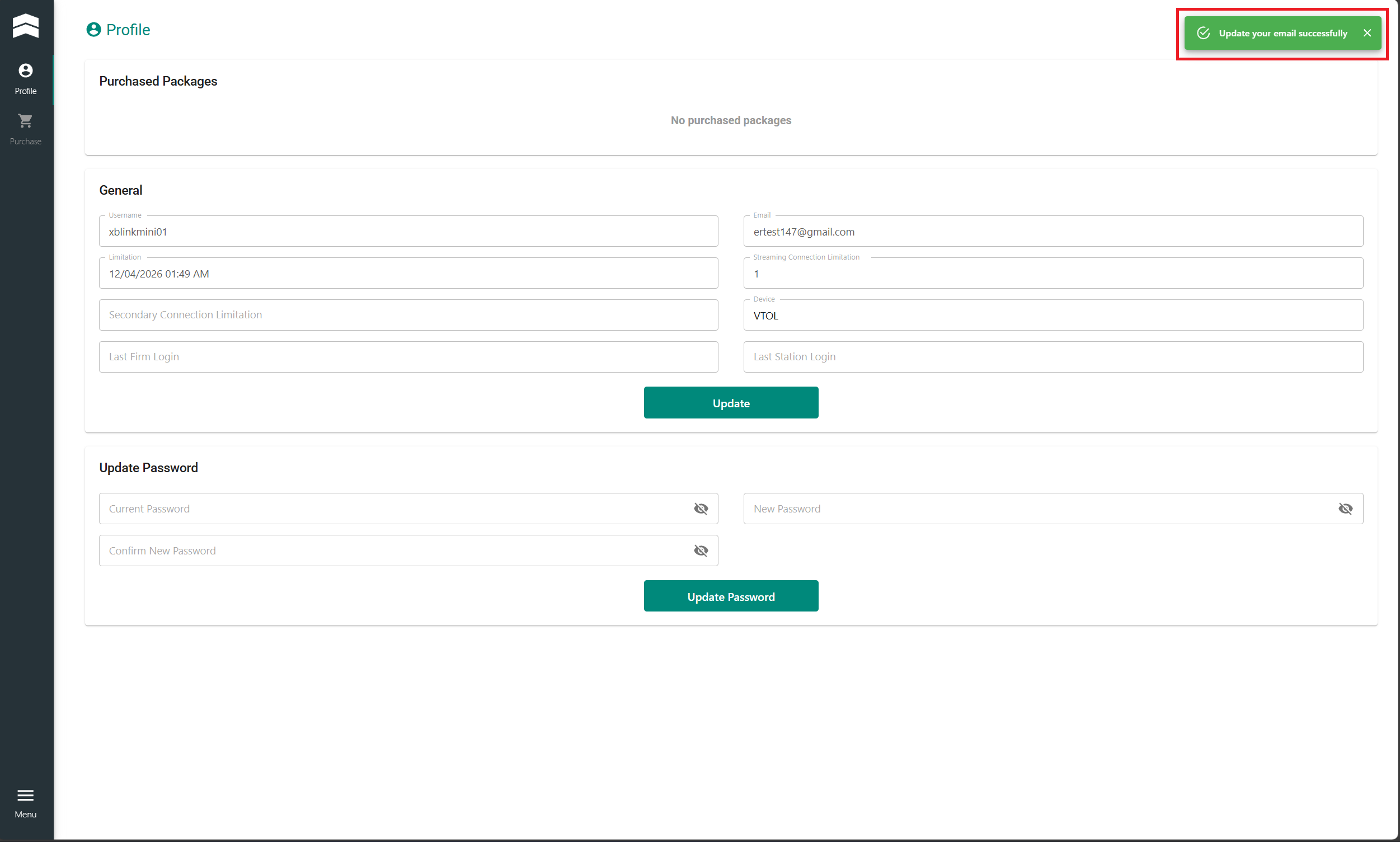 After filled in your email, press Update, you will receive a notification indicate in the picture below