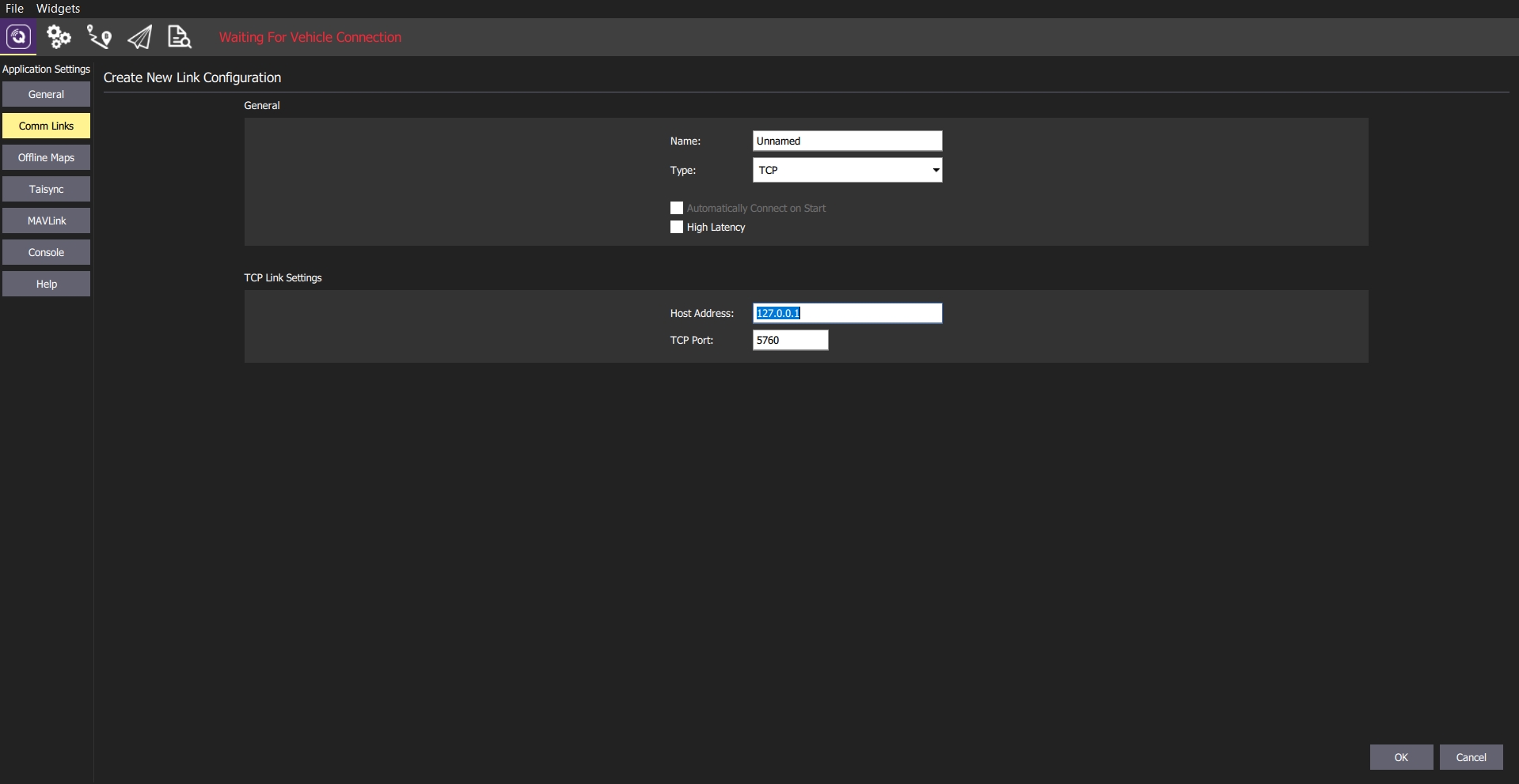 Comm Links -> choose TCP type